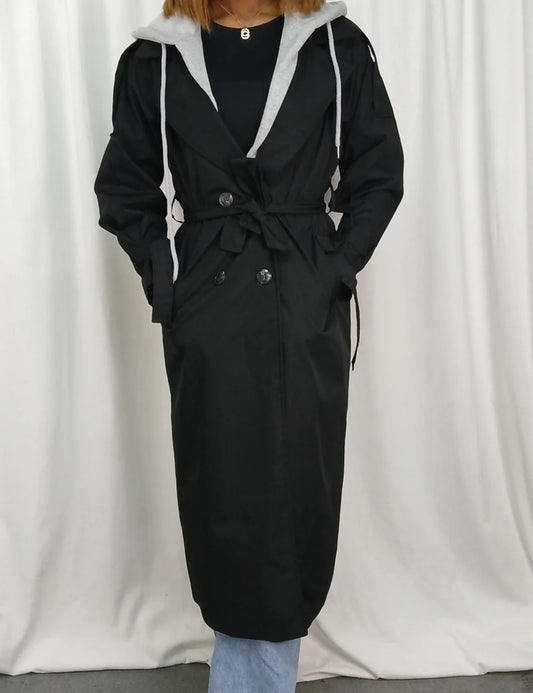 TRENCH LONG À CAPUCHE CEINTURÉ AVEC DÉTAILS LACÉS SUR LES MANCHES